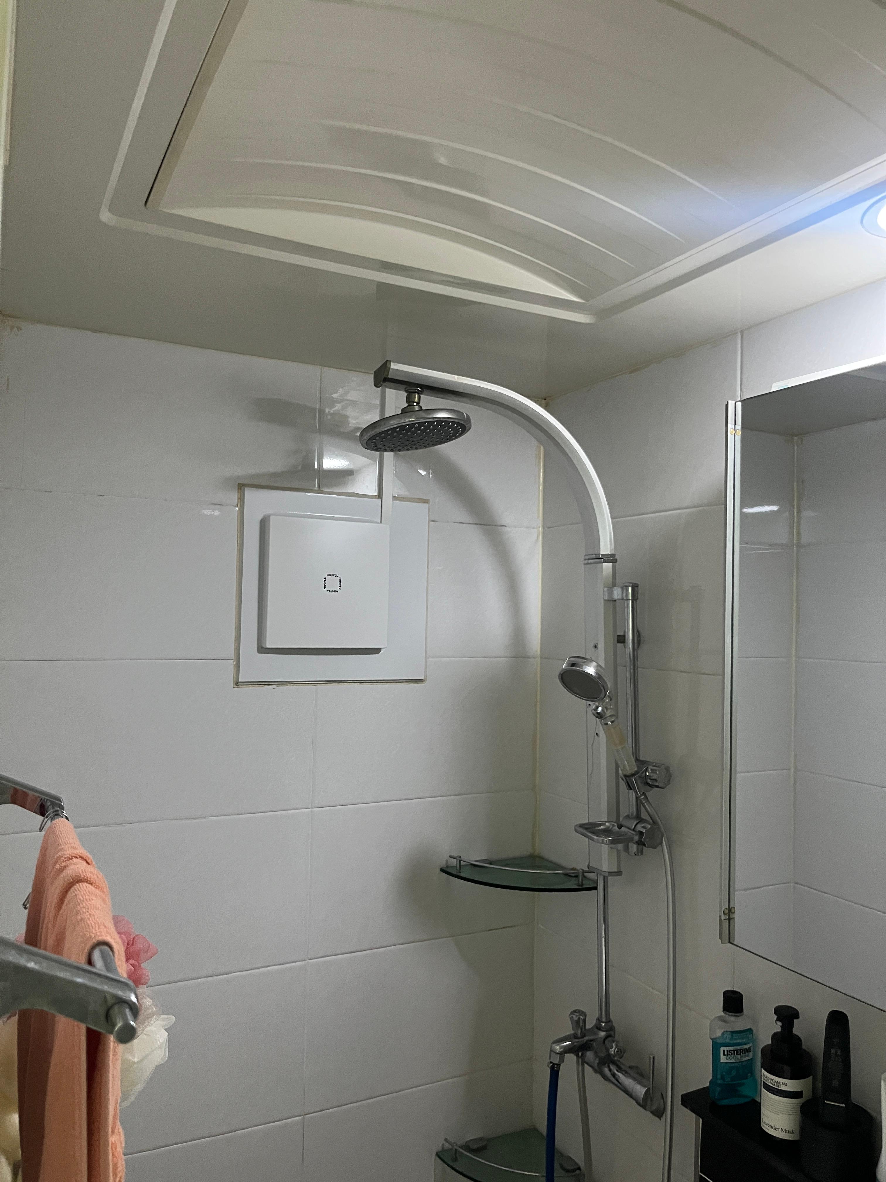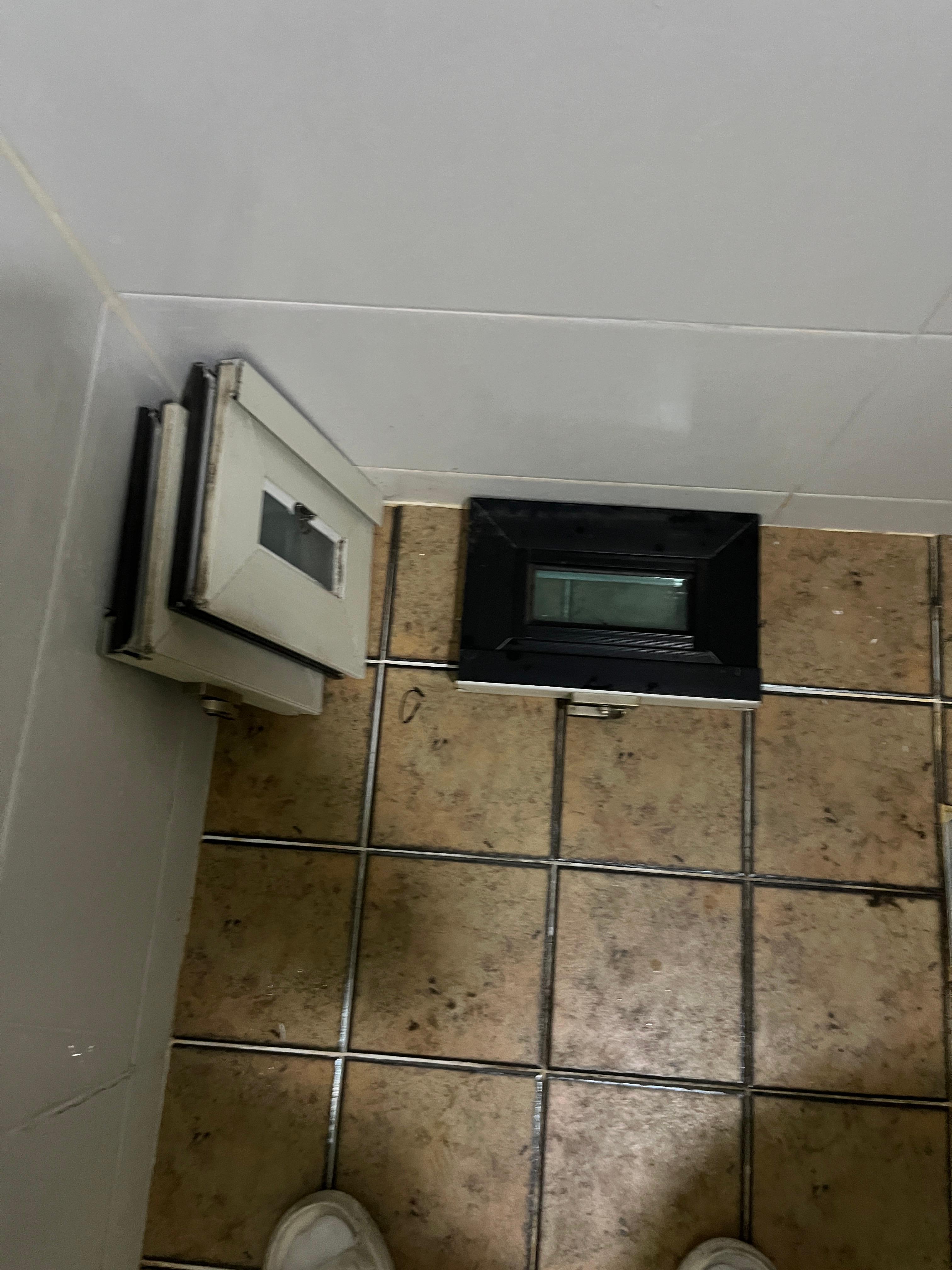 집안쪽으로 습기 들어와서 천정&벽 벽지에 영향을 주는 문제점으로 화장실 창문에 환풍기설치 진행하였습니다.